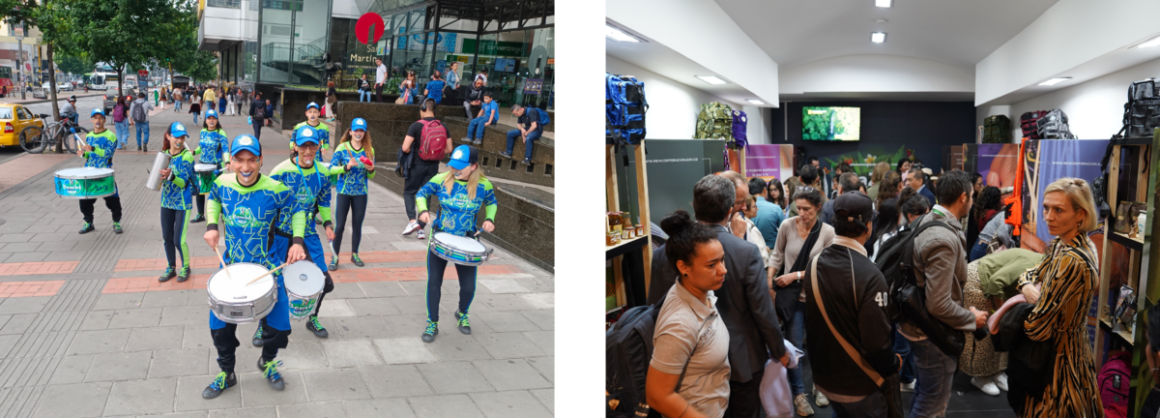In a Bogotá used to the sound of buses, cars’ horns, and bicycle engines, a batucada full of Colombian flavour would be in charge of interrupting the monotonous noise with music to sing the great news: that Friday in April, the PaZate Fair opened its doors at the San Martín Shopping Center to market products and services made and offered by peace signatories.