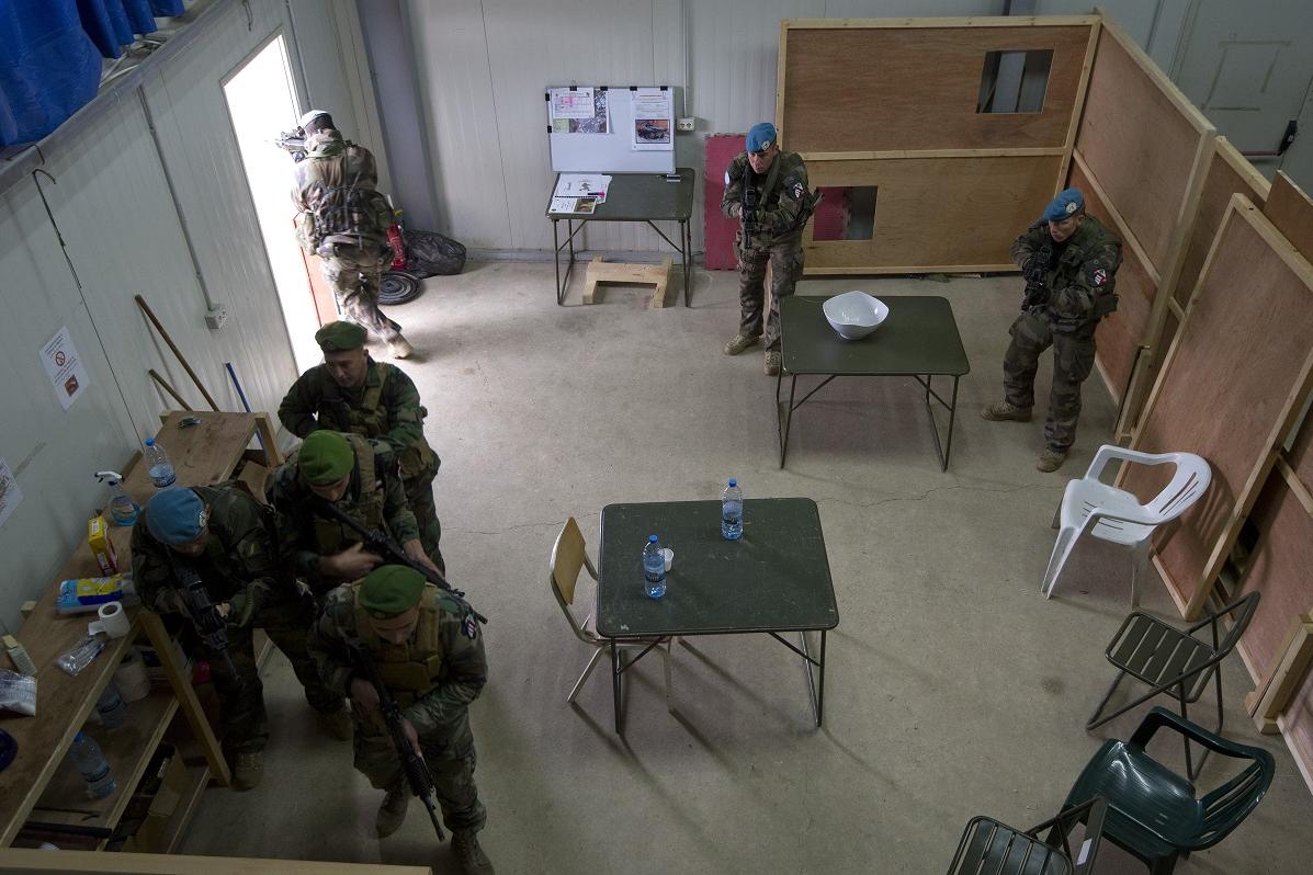 There is an air of anticipation as the group of six soldiers crouch in silence outside the closed building with their weapons poised. Three of the soldiers are from the Lebanese Armed Forces (LAF) and three are peacekeepers…