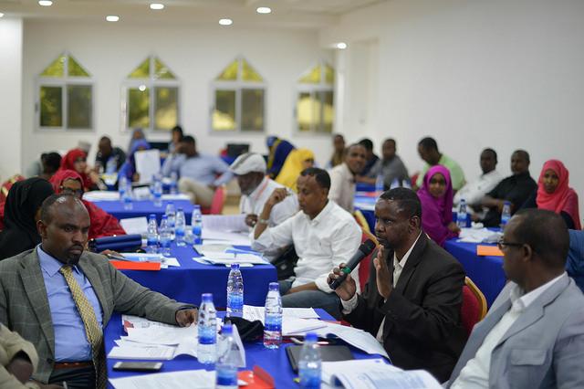 Members of the State Indirect Electoral Implementation Team (SIEIT) at a briefing on the process for the forthcoming elections on 16 August 2016 in Mogadishu, Somalia. UN Photo