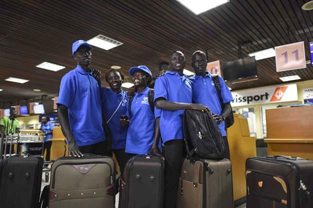 Five South Sudanese refugees who have qualified to compete at the Olympic Games prepare to fly from Kenya to Brazil. Photo: UNHCR/Benjamin Loyseau