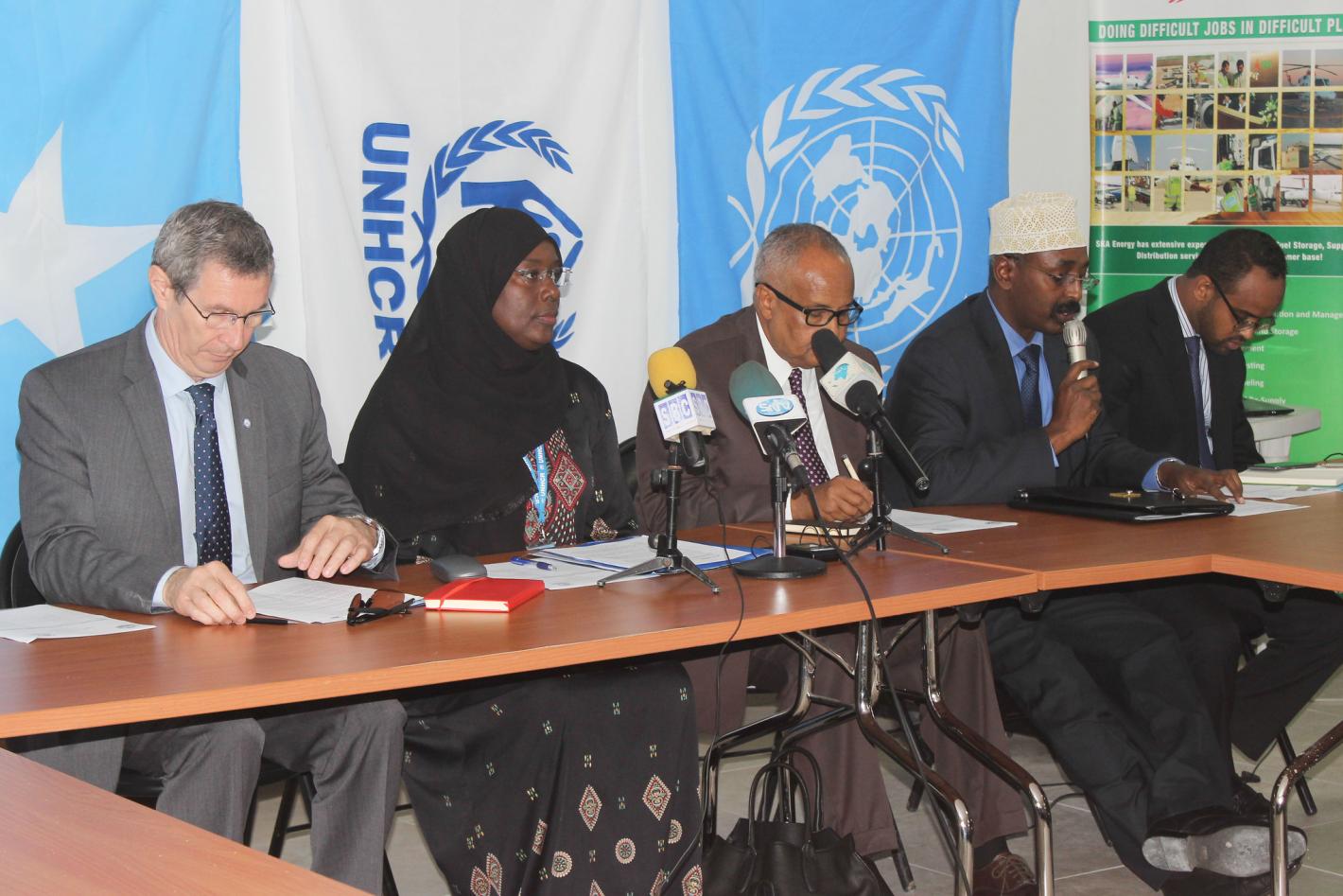 UNSOM Deputy, Peter de Clercq, UNHCR Representative Caroline Van Buren and Somalia Foreign Affairs Minister Abdisalam Hadliye Omar during World Refugee Day
