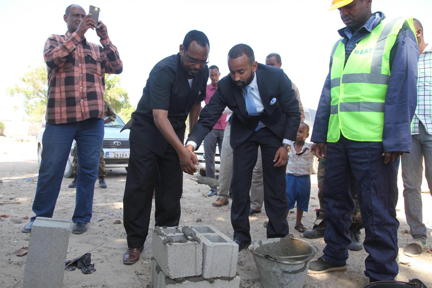 Mr Malik Abdalla, the Director of Disengaged Combatants in the Ministry of Internal Security of the Federal Government and Mr Abdirashid Goni, the Governor of Lower Jubba region during the ceremony for the construction of the reintegration centre in Kismayo
