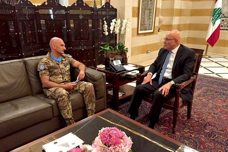 UNIFIL Head of Mission and Force Commander Major-General Luciano Portolano meets Lebanese Prime Minister Tammam.