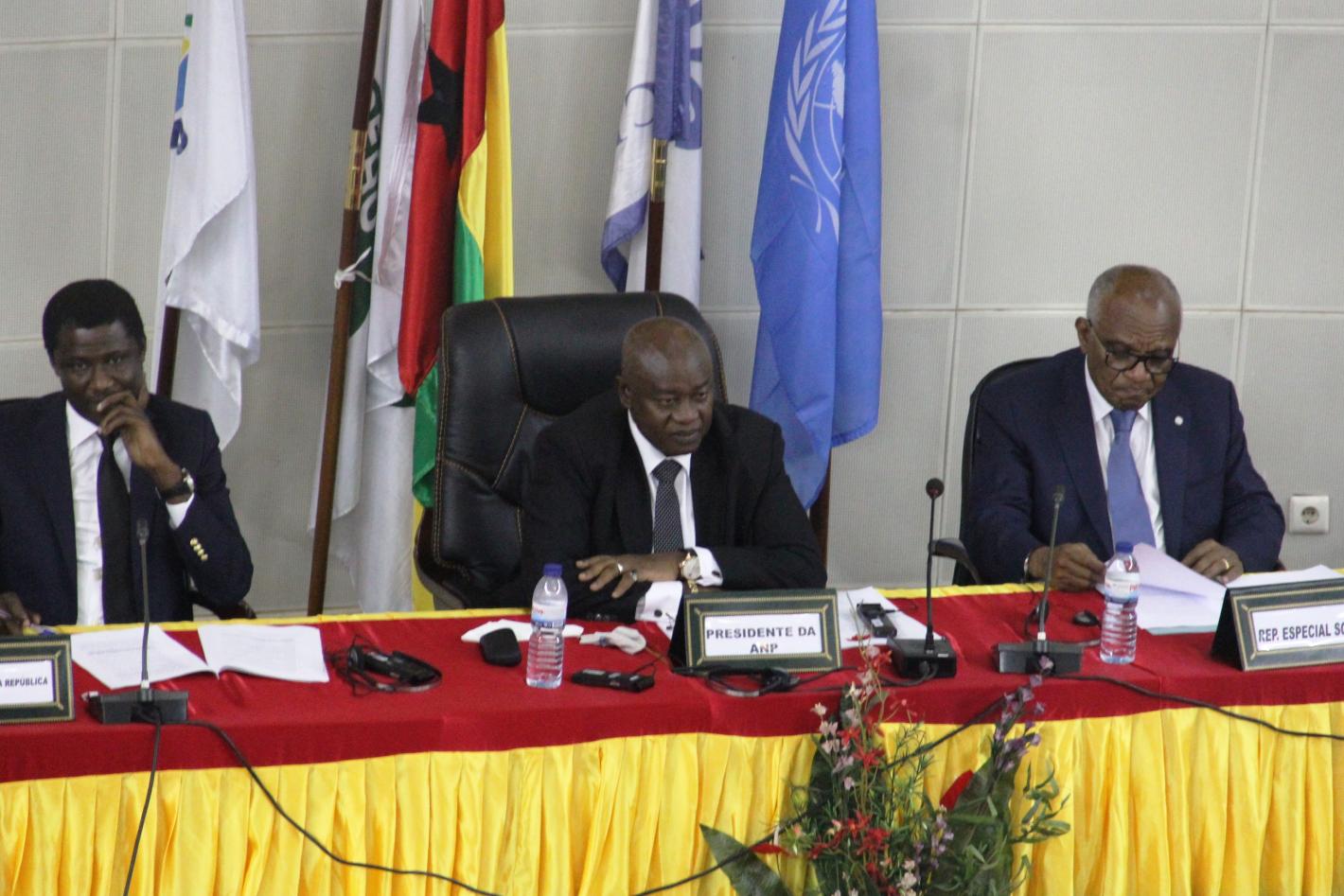 From left to right: Octavio Lopes, Representative of the President, the Speaker Cipriano Cassama and SRSG Miguel Trovoada