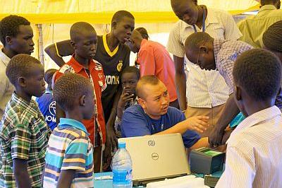 Officials carry out registration at UNMISS protection site in Juba in an exercise which revealed that there are 27122 internally displaced people at the mission’s largest site near UN House. Photo: UNMISS/Ilya Medvedev