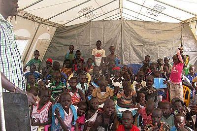 Primary school set up by UNMISS, UNICEF and Intersos for displaced at mission's protection site in Bor, Jonglei State. Photo: UNMISS/Mihad Abdalla