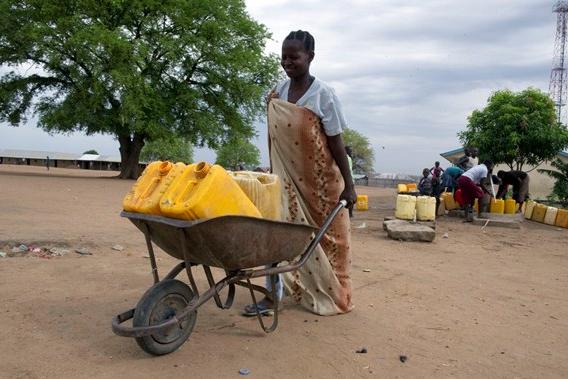 Woman transporting water to her home in Juba, South Sudan, as the world celebrates World Water Day on 22 March. Only about 25 per cent of the country's population enjoys access to safe drinking water. Millions of people must…
