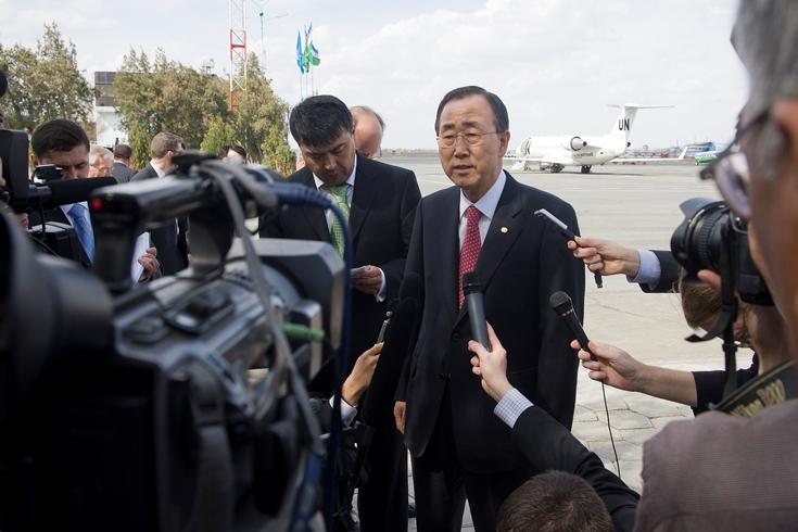 ASHGABAT, Turkmenistan SG: Good afternoon ladies and gentlemen. It is a great pleasure for me to have a brief press stakeout and I am very pleased to visit Central Asia, starting from Turkmenistan. I am very impressed by what…