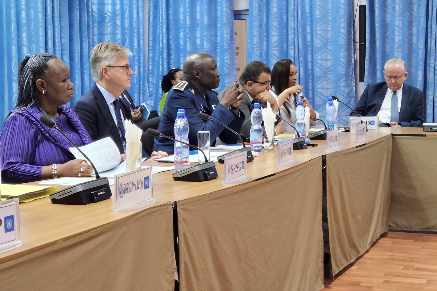 An UNMISS team in a meeting to discuss how to reduce tensions between feuding communities in Magwi County. Photos: Moses Yakudu/UNMISS