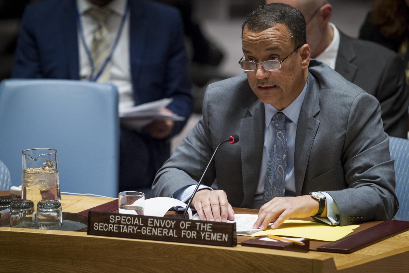 Ismail Ould Cheikh Ahmed, the Secretary-General's Special Envoy for Yemen, briefs the Security Council. 17 February 2016. UN Photo/Loey Felipe